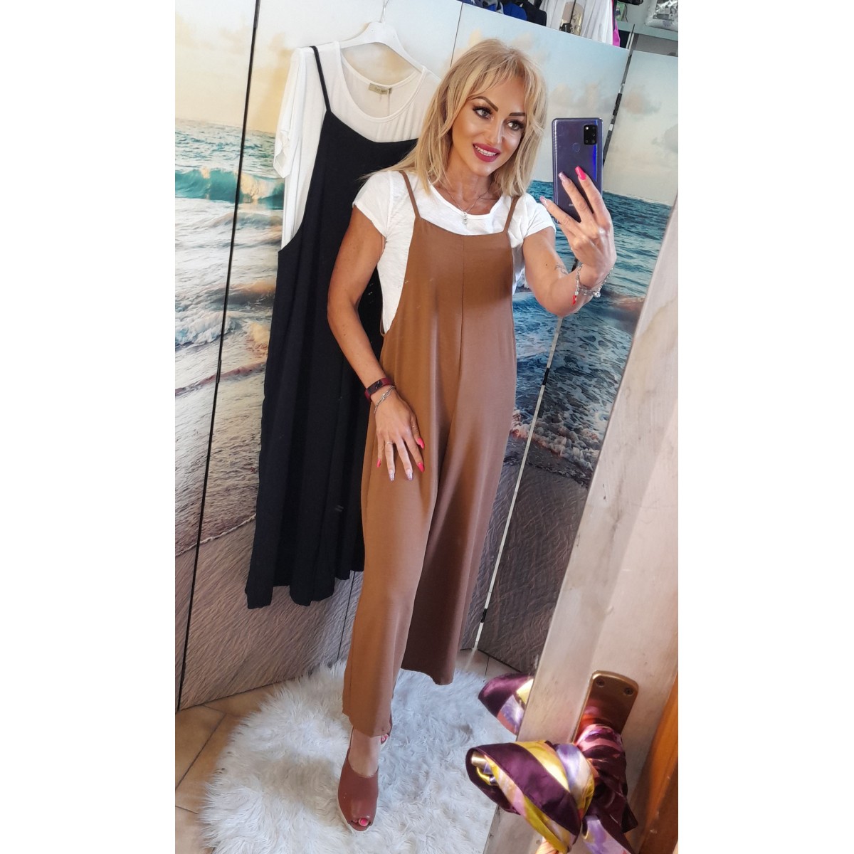 Tutina intera scollo tondo spalline sottili, vestibilità molto morbida. Taglia unica