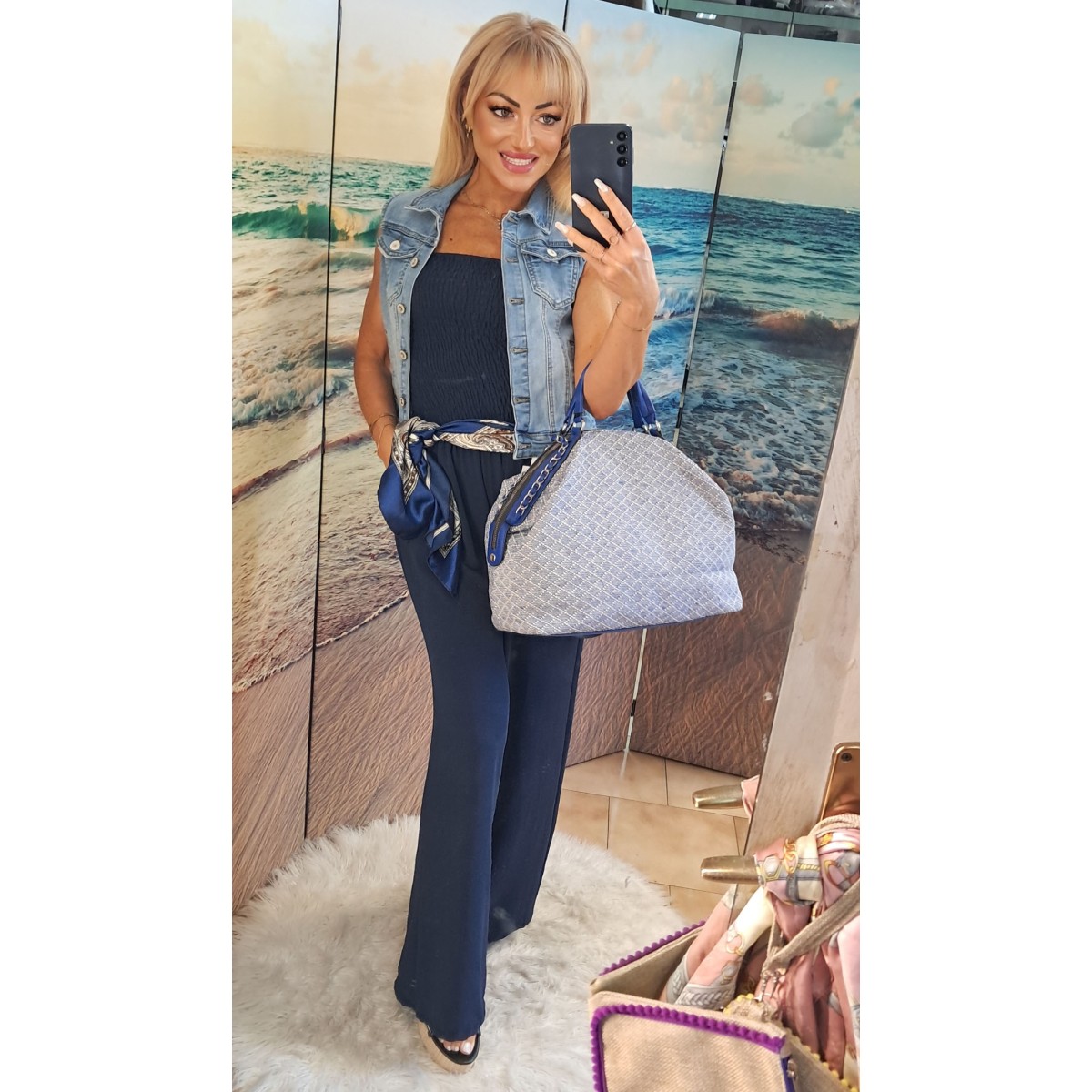 Salopette misto lino fresca e leggera, con tasconi laterali. Vestibilità morbida e comoda. Taglia unica.