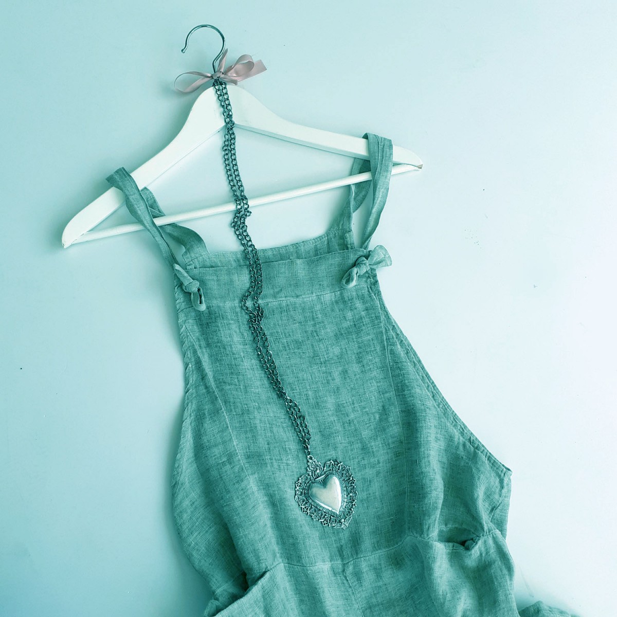 Salopette corta in puro lino 100%, vestibilità morbida, lunghezza al ginocchio. Taglia unica