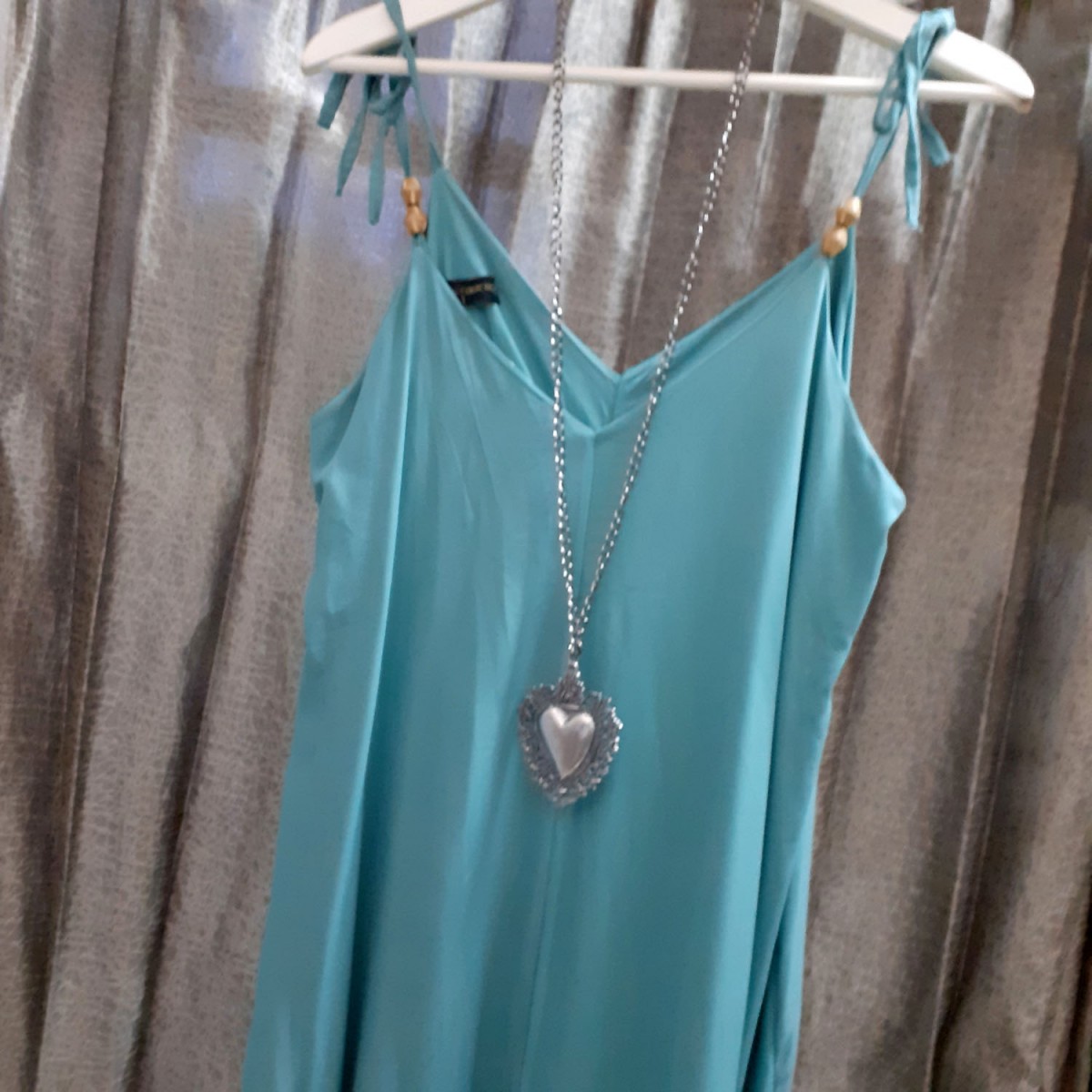 Tutina di cotone fresco e leggero con scollo a V profondo e spalline sottili regolabili impreziosite da perline....