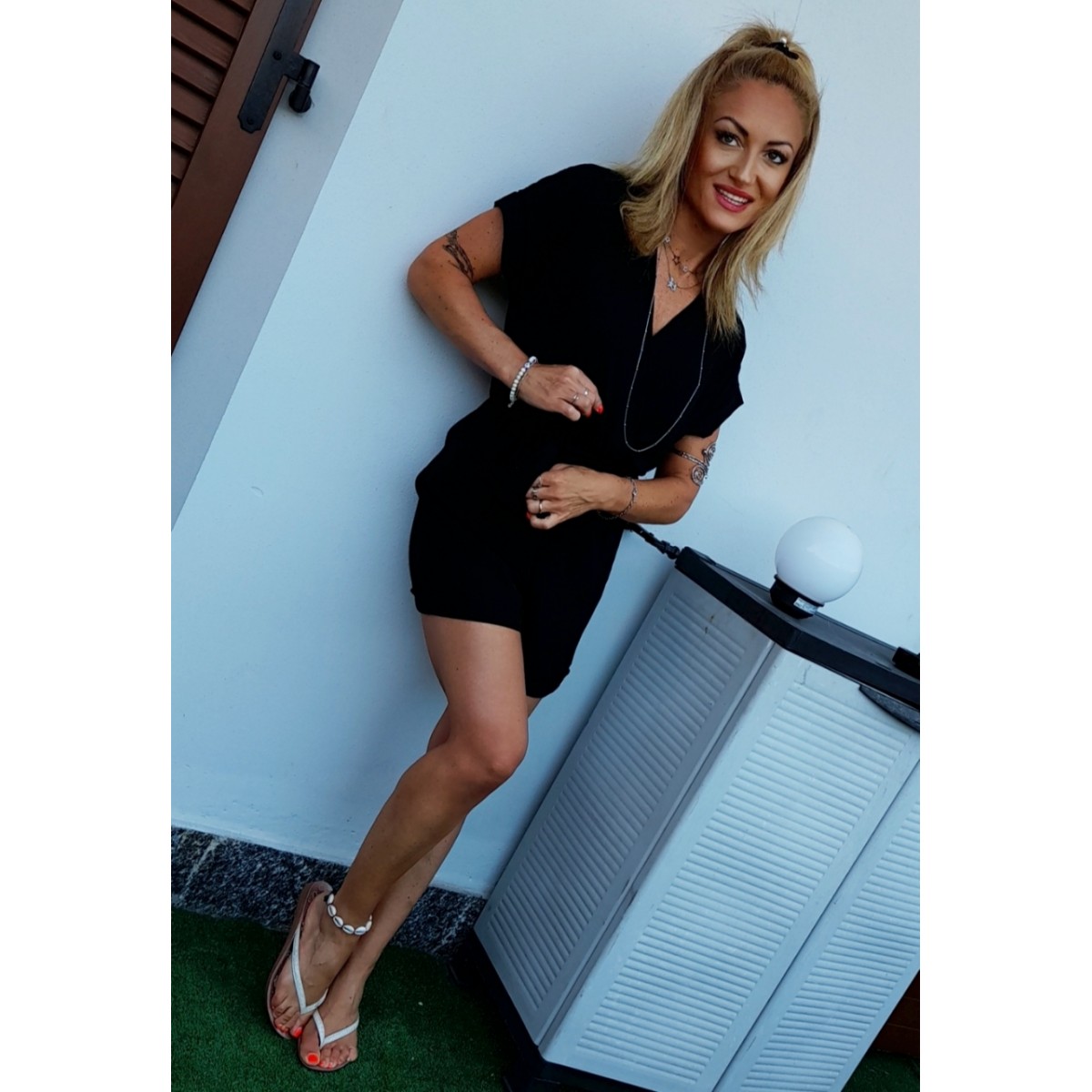 Tutina corta elegante con spalle scoperte in tessuto elasticizzato con elastico sul retro e in vita per modellare le forme, dettagli dorati sul fronte. Taglia unica