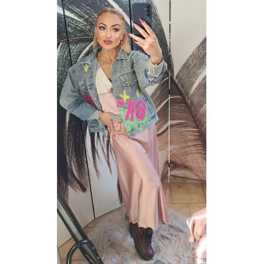 Gonna lunga a fantasia floreale sui toni del beige ed oro, in tessuto leggero lucido simile al raso, lunghezza alla caviglia, vestibilità morbida, cinturino elastico in vita. Modello molto elegante e chic, perfetto da indossare con una maglietta aderente. Taglia unica