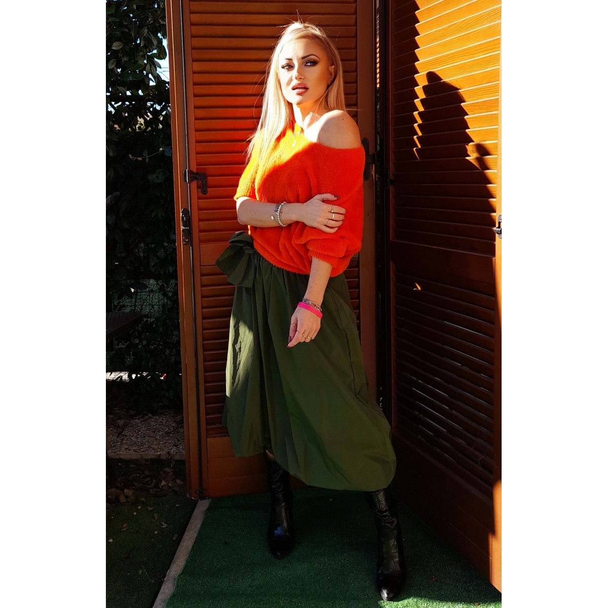 Gonna a palloncino con fiocco | Bella Gonna lunga a palloncino in tessuto impermeabile con fiocco in vita, lunghezza alla polpaccio, vestibilità morbida. Taglia unica